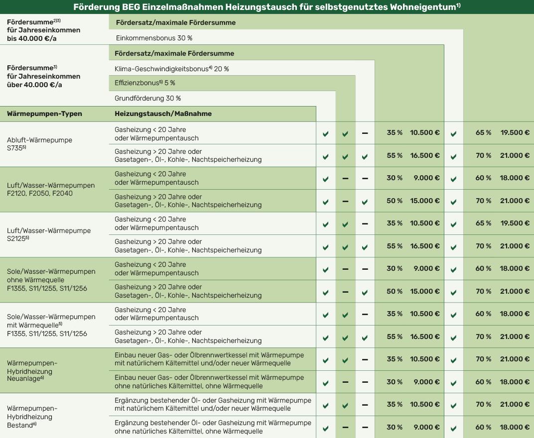 Hier ein Beispiel der Förderungstabelle der Firma Nibe.
